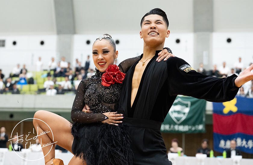 7月6日に大阪東和薬品RACTABドームにて、学生日本一を決める「夏の全日本学生選抜競技ダンス選手権大会」(通称:夏全)が開催され、本学の今西彩さんと中央大学山崎奏汰さんのペアがラテンの部で優勝しました! 今西彩さんはラテンの部ボールルームクイーン賞も受賞されました。