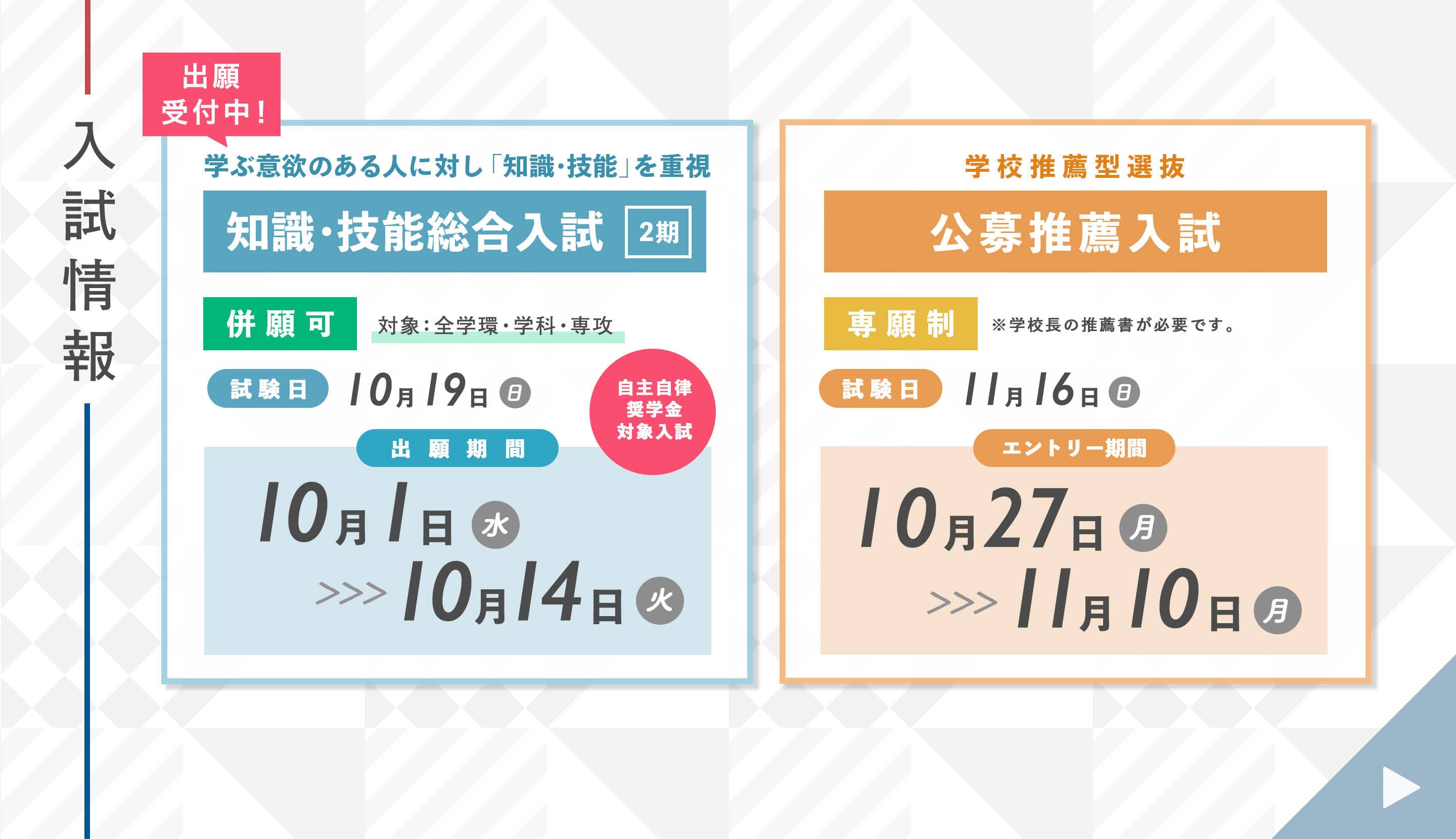 一般選抜【統一地区入試】の出願締切りは1月21日(火)必着です。