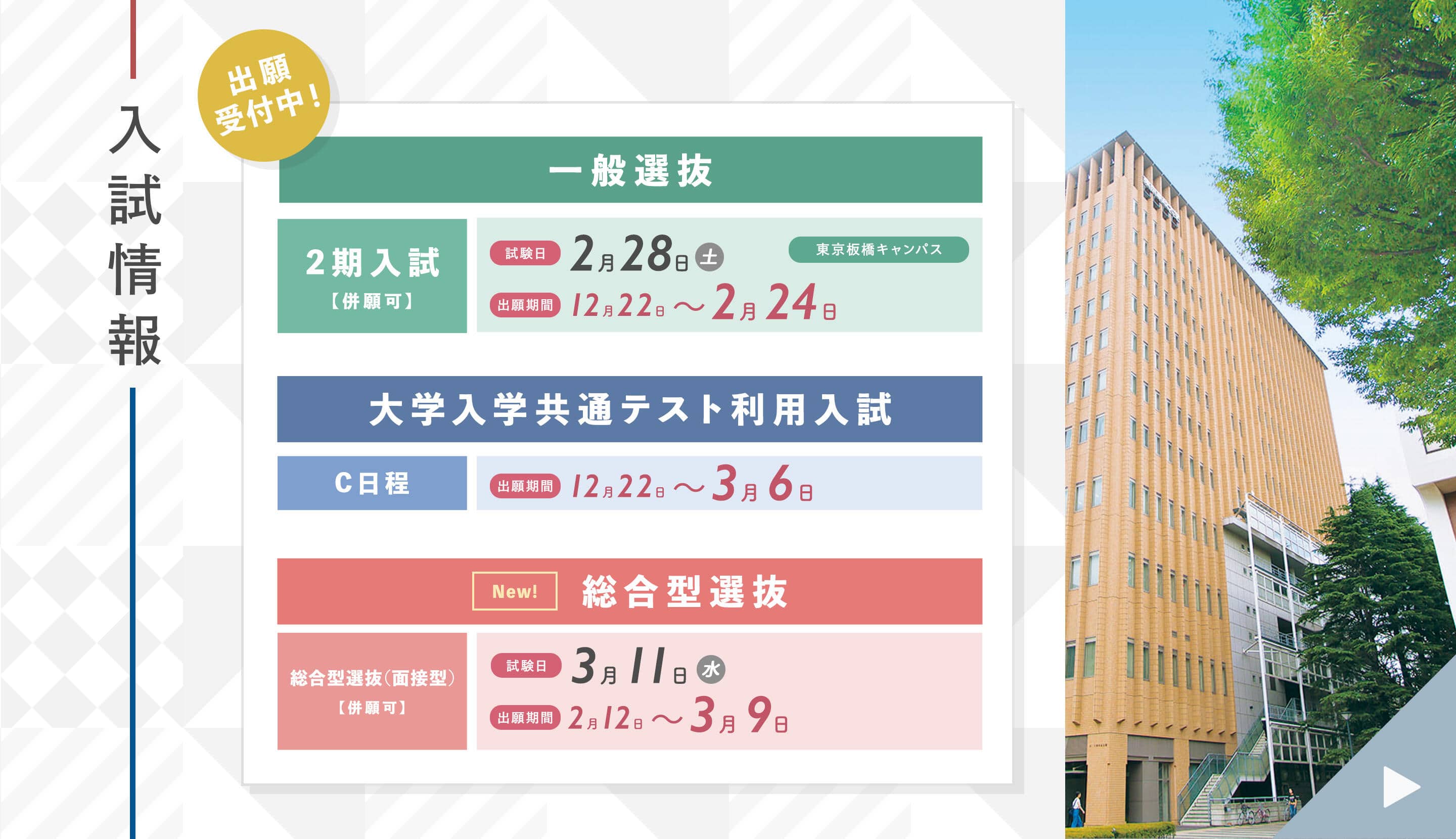 【学生・保証人の皆様へ】令和8年度より、教育改革の一環として板橋・狭山両キャンパスの授業時間を統一することを決定しました。