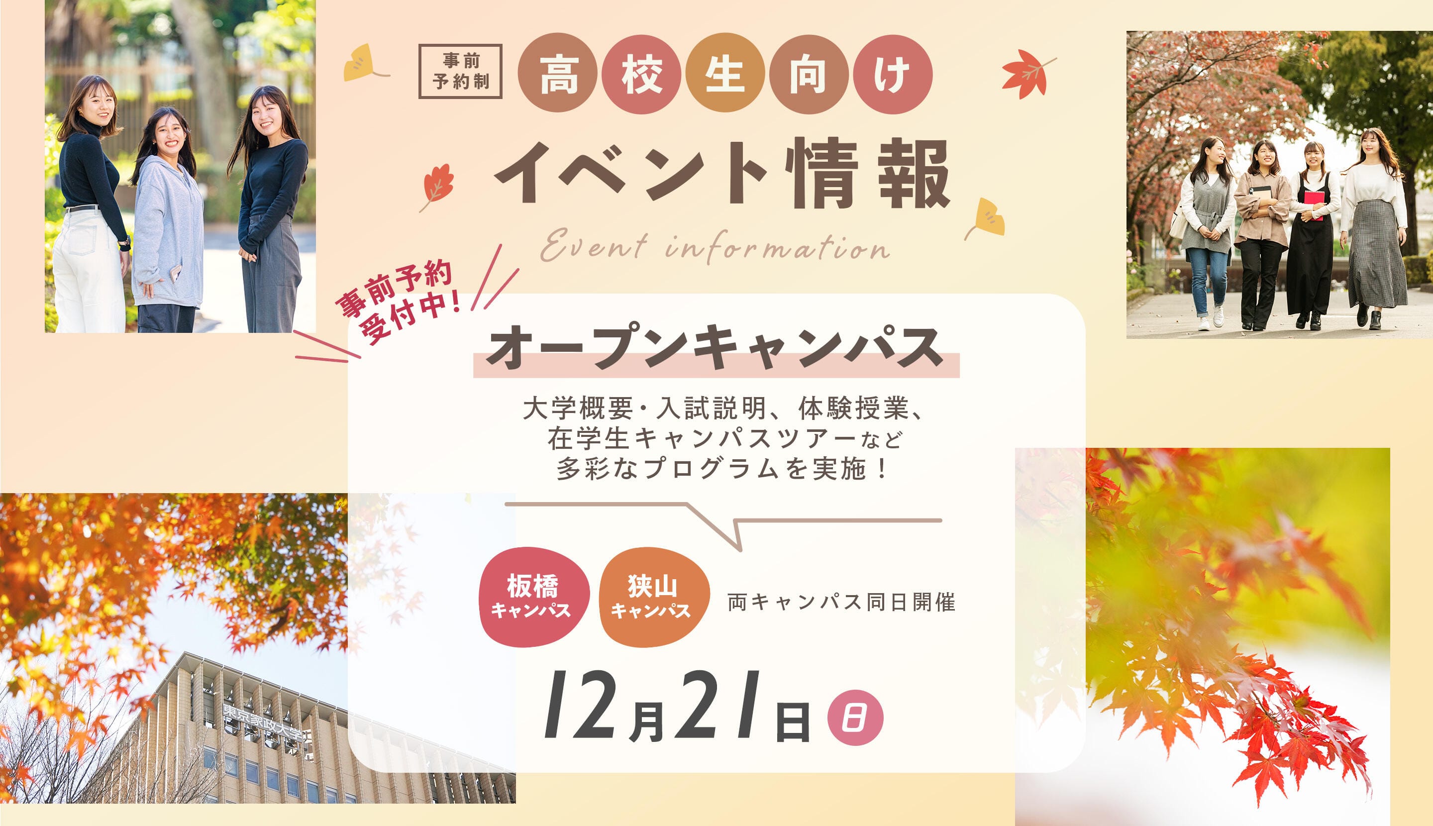 12/21(日)オープンキャンパス【板橋・狭山】の事前予約受付中!ぜひご来場ください!