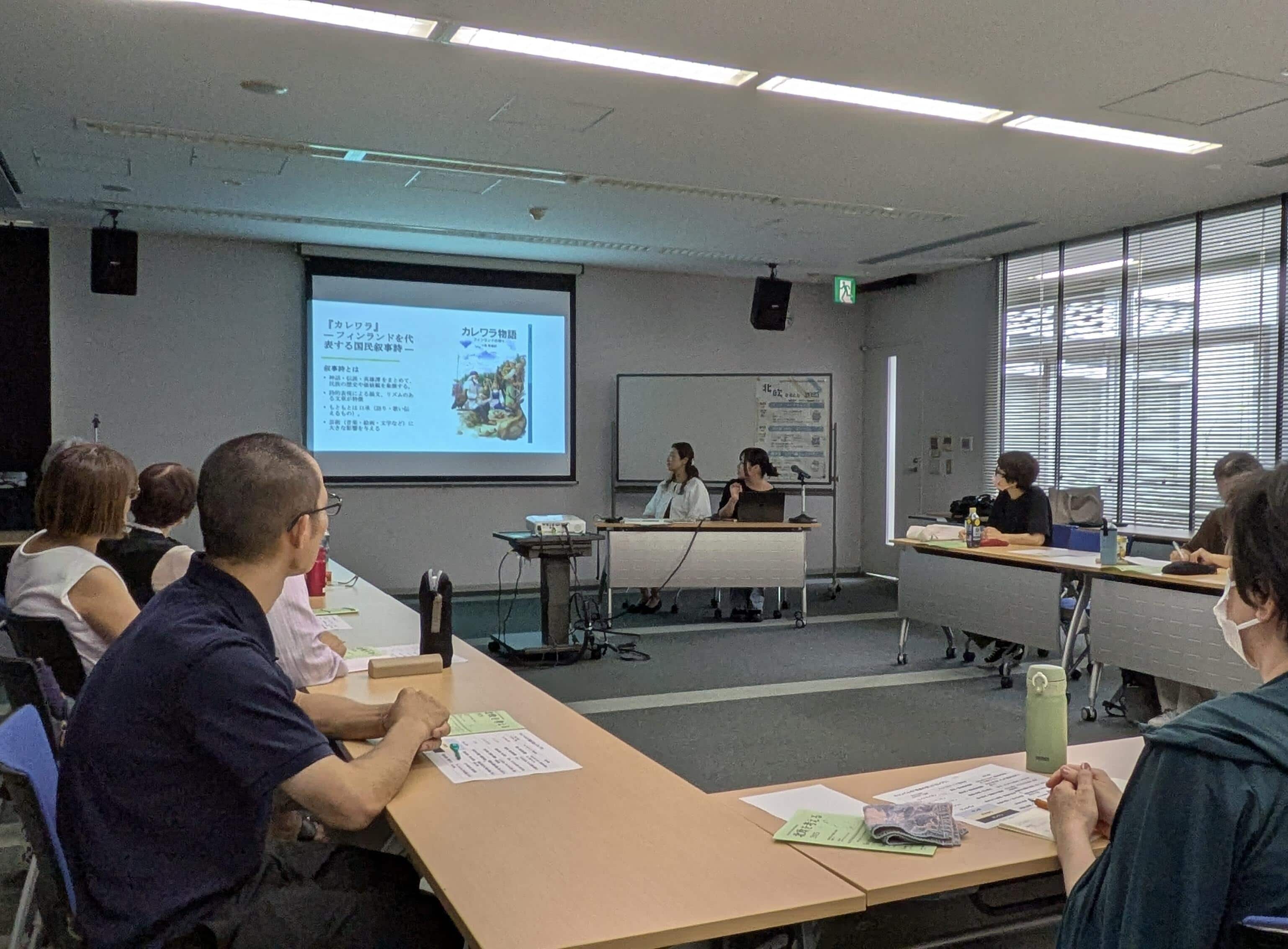 北区中央図書館と芸術学研究室との連携企画「北欧を考える」の第2弾は「耳と目で知るカレワラ」と題し、ゼミ生によるカレワラの朗読、金城正紀助教による神話の解説、和田菜穂子准教授による対話型絵画鑑賞を行いました。