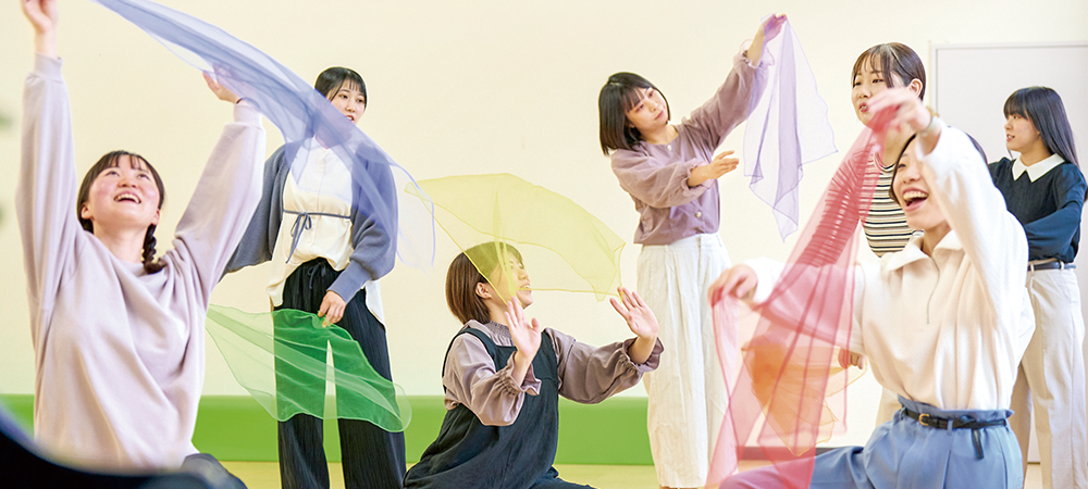 ・「子ども芸術・文化科目群」では、芸術表現活動によって子どもの様々な可能性を引き出す実践力を身につけることを目的として、臨床美術士、ダルクローズ・リトミックエレメンタリー初級免許を取得できます。