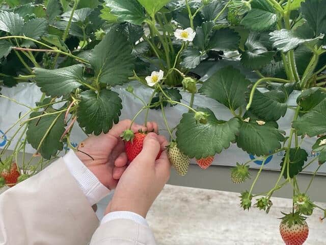 栄養学科 令和8年度 新入生向けフレッシュマンセミナー栄養学科は日本最大級の空中いちご園であるGranberry大地を訪れ、農園見学を通して生産から加工、さらにいちご狩りを含む観光事業までを一体的に展開している取り組みについて学ぶことができました。また、実際にいちご狩りも体験し、学生同士や教員との交流を深める貴重な機会となりました!.