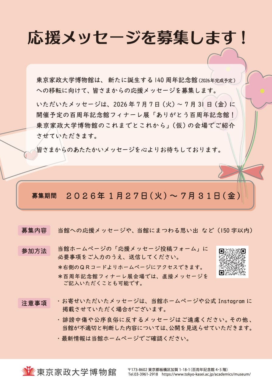 「ありがとう百周年記念館!東京家政大学博物館のこれまでとこれから」(仮)の