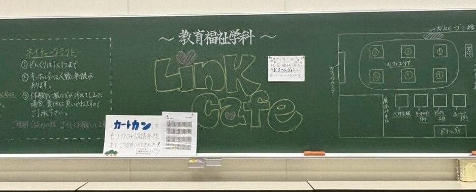 社会教育分野では宮地ゼミを中心に今年も「Link Cafe」を開催し、味噌クッキーの販売や平戸ゼミ、栁沢ゼミ、春田ゼミの学生と協力しネイチャークラフトの子ども向け体験コーナーも提供しました。