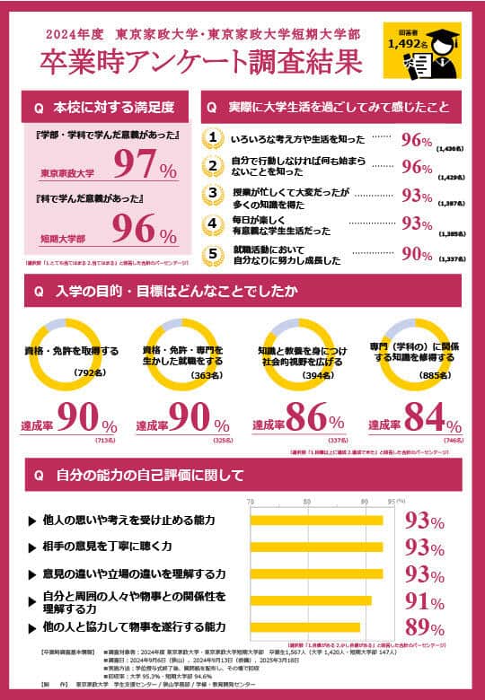 調査対象:2024年度 東京家政大学・短期大学部卒業生(大学院を除く)1,567名