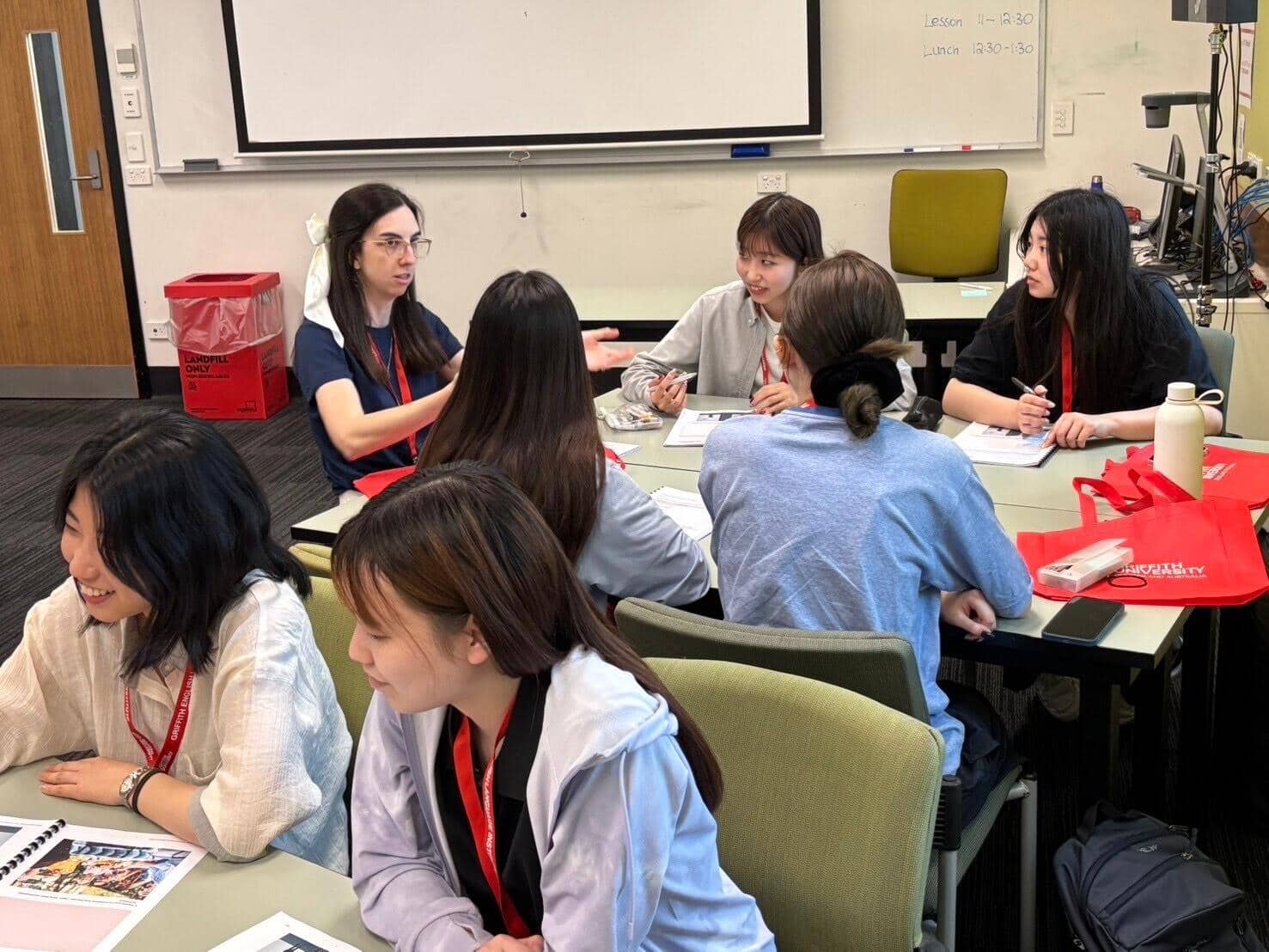 ① 《英語クラス》スピーキング、リスニング、リーディング、ライティング、の4技能を強化し、生きた英語を学びます。(家政大学生のクラス)