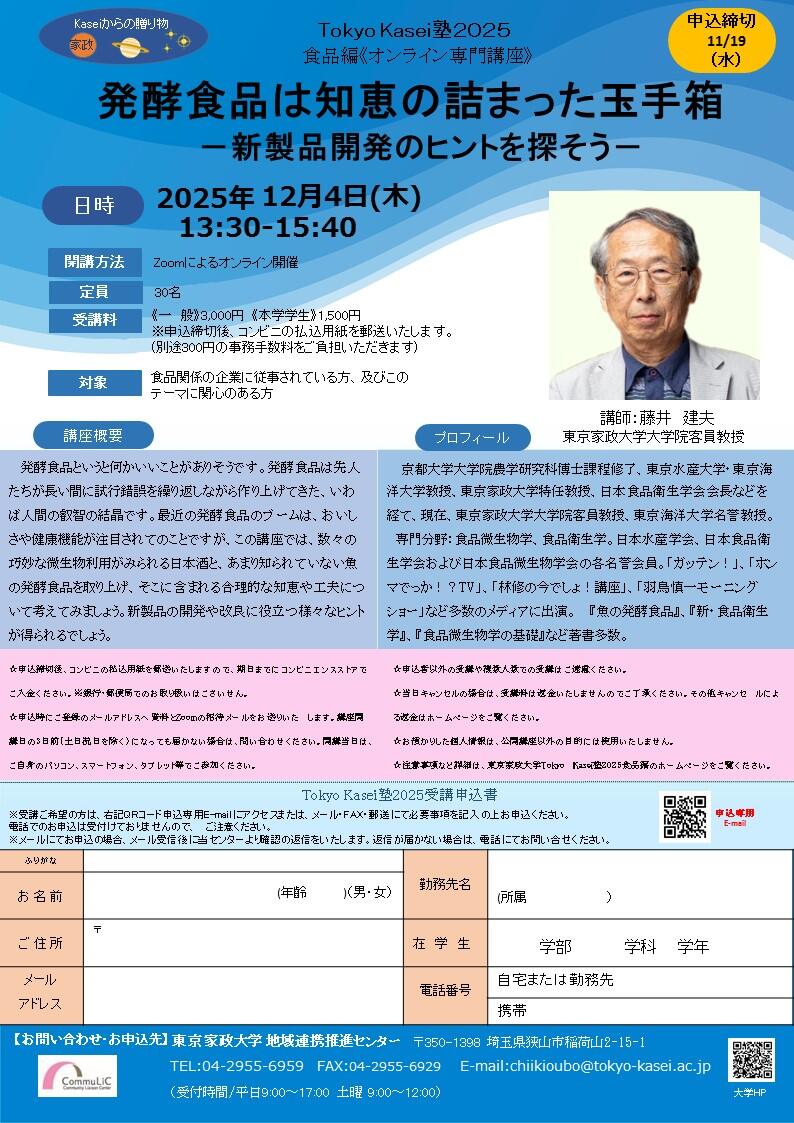 Tokyo Kasei塾2025 食品編(オンライン専門講座)
