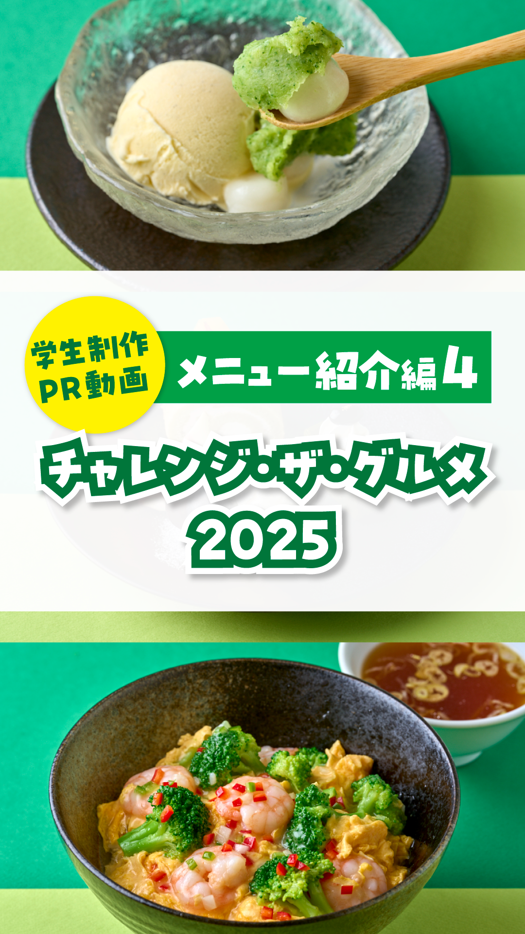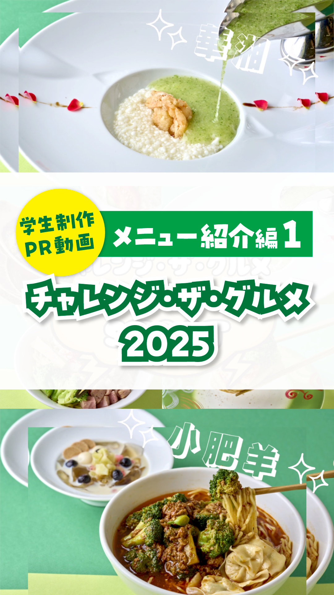 メニューを開発した学生4名が、フェアのPR動画制作にもチャレンジしました。制作打ち合わせで全体の投稿プランや担当を決定。また、作業を進めながら意見や質問を出し合い、協力して制作に取り組みました。試行錯誤を経て完成した6本の動画は、大学公式SNSで公開され、学生ならではの等身大の視点で「チャレンジ・ザ・グルメ 2025」の魅力を、広く発信しました。