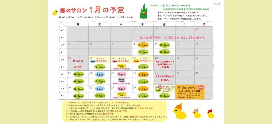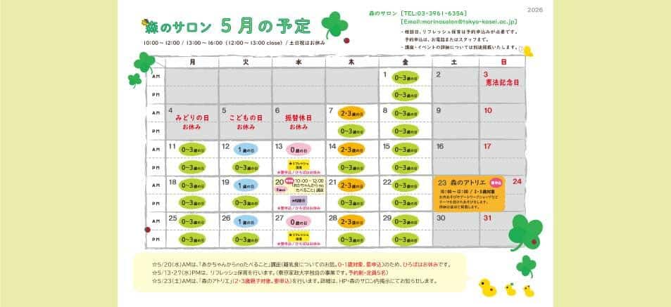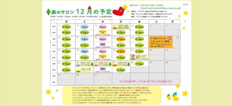 東京家政大学ヒューマンライフ支援機構 ヒューマンライフ支援センター 森のサロンTEL 03-3961-6354(直通)