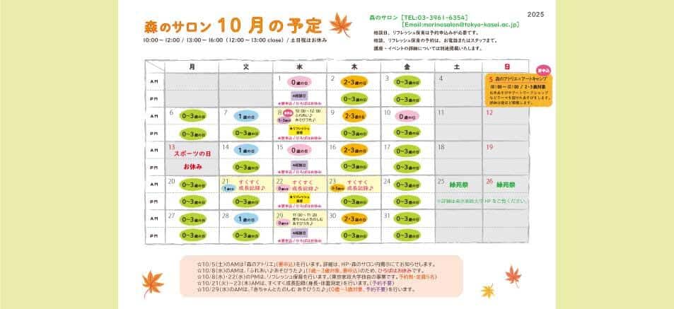 東京家政大学ヒューマンライフ支援機構 ヒューマンライフ支援センター 森のサロンTEL 03-3961-6354(直通)