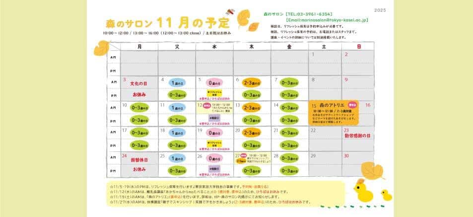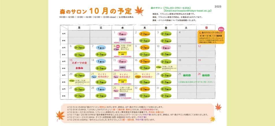 東京家政大学ヒューマンライフ支援機構 ヒューマンライフ支援センター 森のサロンTEL 03-3961-6354(直通)