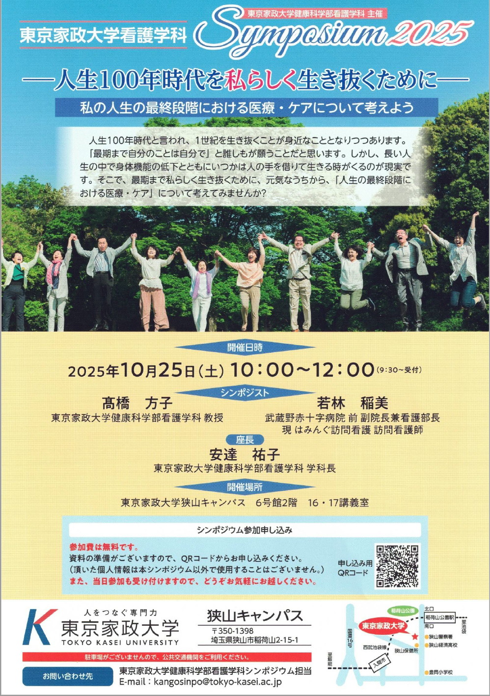 2025年10月25日(土)10:00~12:00学科シンポジウム テーマ :人生100年時代を私らしく生き抜くために-私の人生の最終段階における医療・ケアについて考えよう―2024年10月26日(土)10:00~14:30学科シンポジウム テーマ :「その人らしく生活する」を支える看護の実践ー活躍する卒業生たちー
