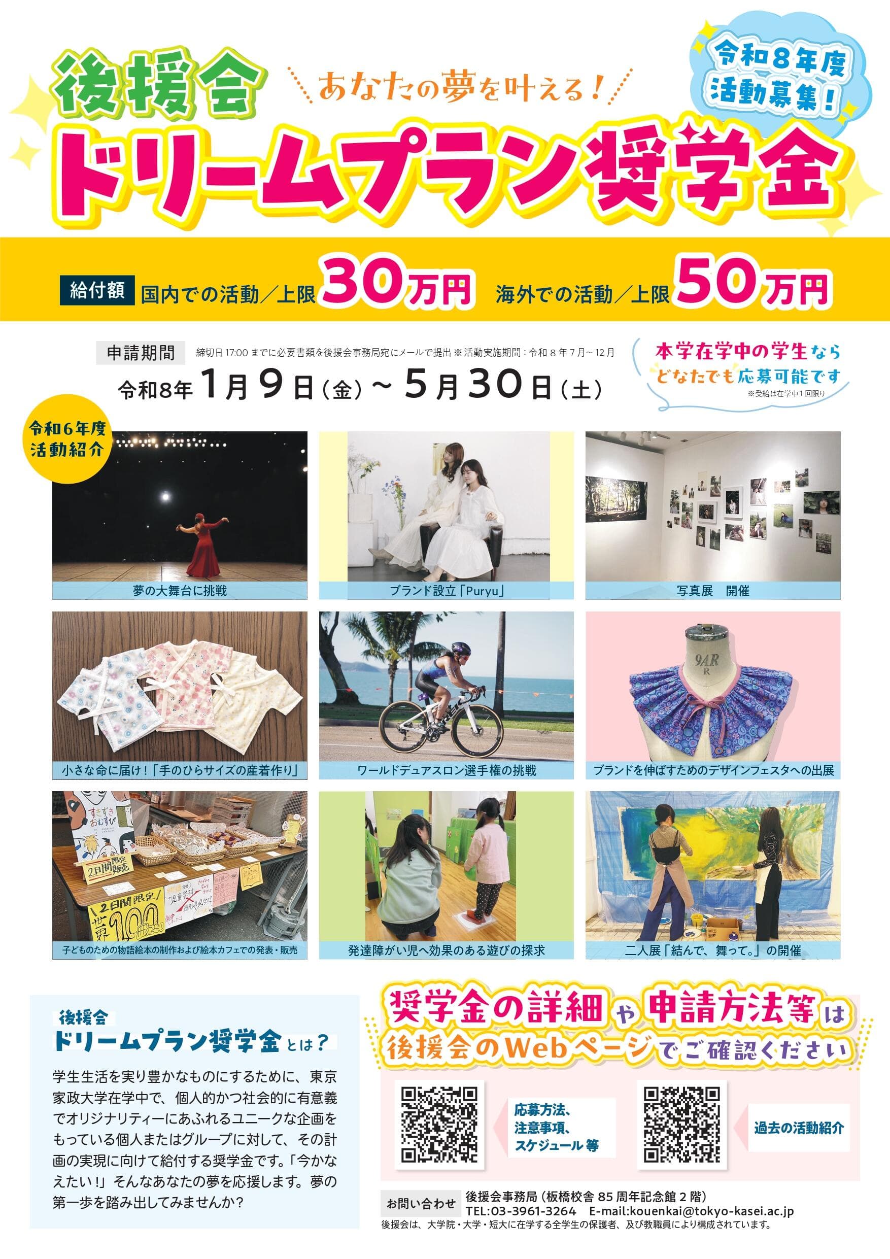 | 応募方法 | 所定の申請書を記入の上、申請期間内に後援会事務局にメールで提出 |